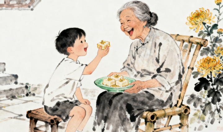 孩子对她也是蜜一样的依赖,一撒娇就往奶奶怀里蹦。